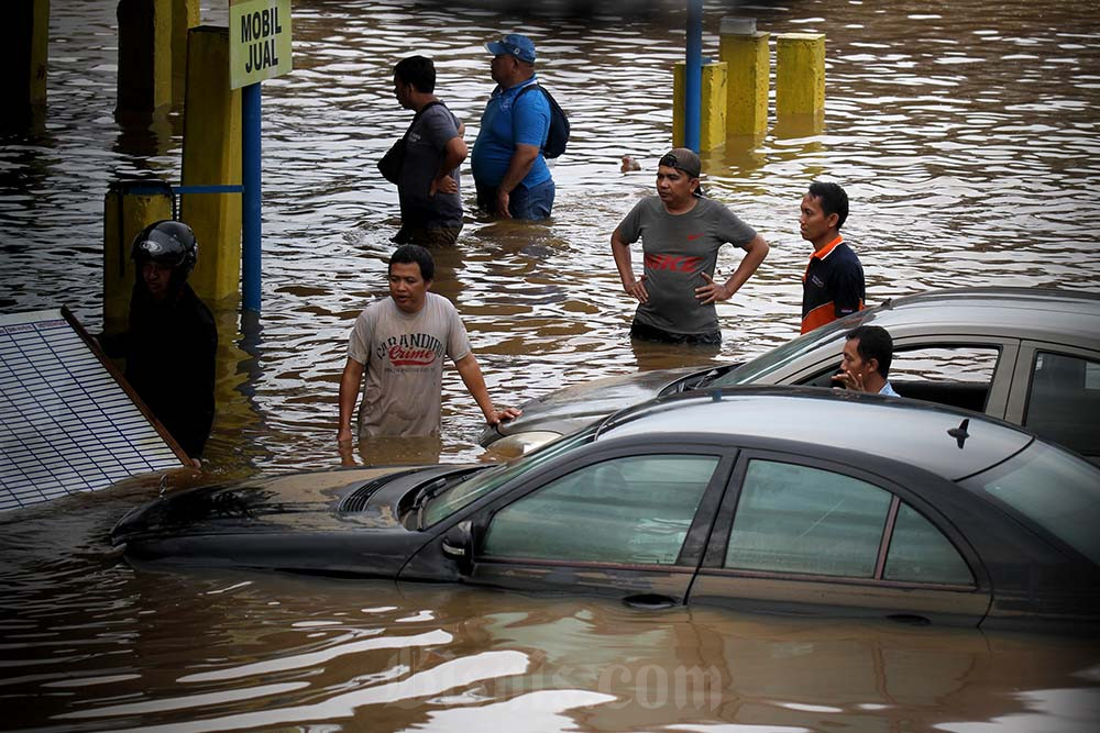 Warga menerobos banjir di Jalan T.B. Simatupang, Jakarta. Bisnis/Arief Hermawan P