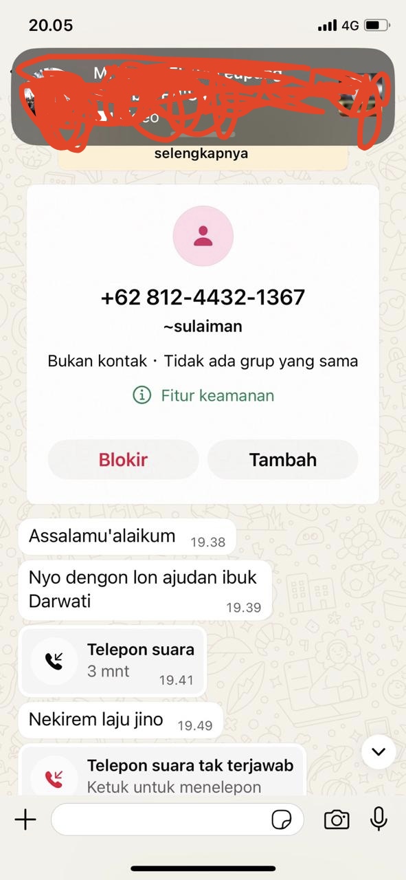 Seperti yang dialami jurnalis penanews.co.id Senin (10/11/2025) malam, ditelepon melalui oleh seseorang dari nomor +62 812 4432 1367.