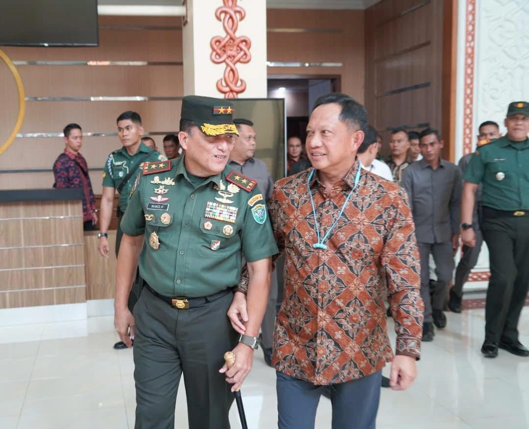 KOTA JANTHO– Panglima Komando Daerah Militer Iskandar Muda (Pangdam IM), Mayor Jenderal TNI Niko Fahrizal, M.Tr.(Han), menyambut kedatangan Menteri Dalam Negeri (Mendagri) RI, Jenderal Pol. (Purn.) Prof. Drs. H. Muhammad Tito Karnavian, B.A., M.A., Ph.D., dan Menteri Ekonomi Kreatif (Menekraf) RI, Teuku Riefky Harsya, di Bandara Internasional Sultan Iskandar Muda, Aceh Besar, Selasa (11/2/2025).
