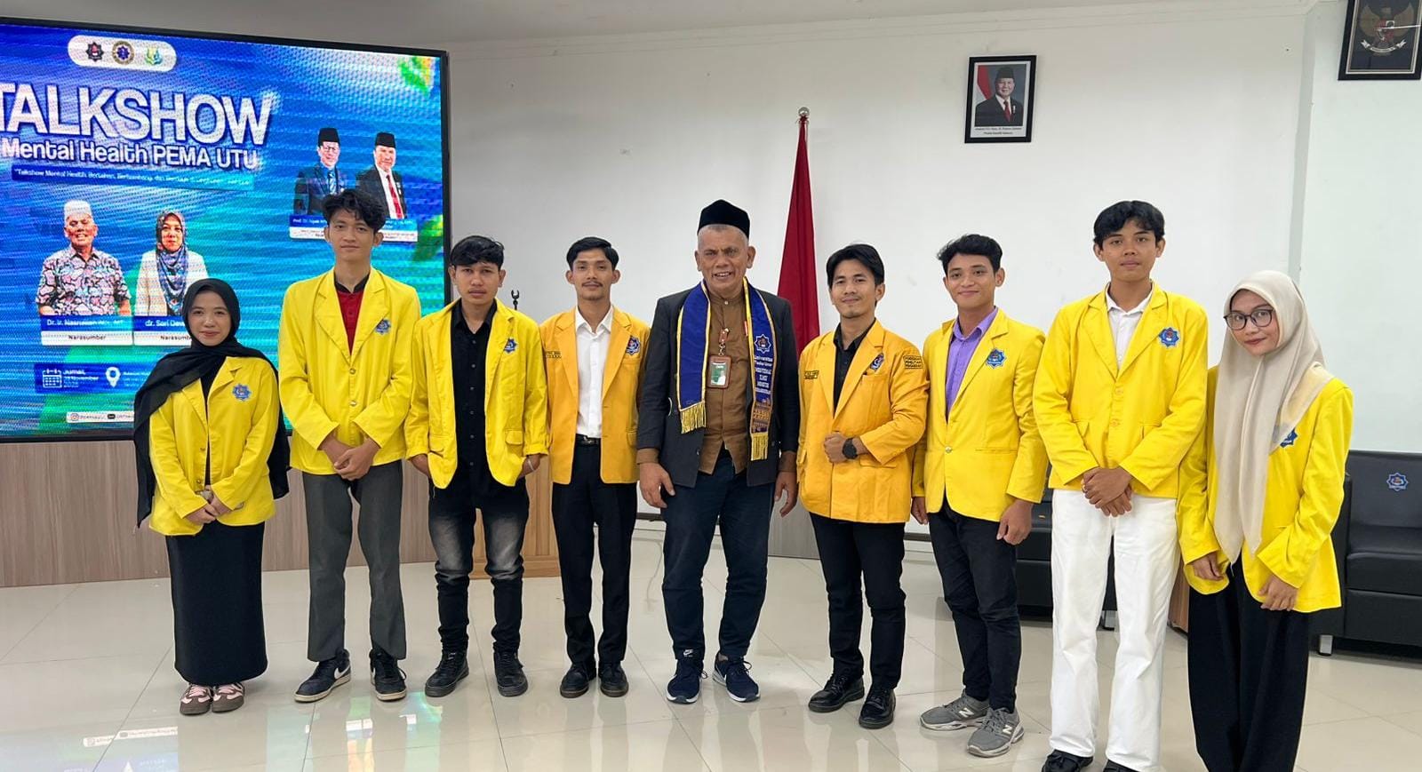 Talkshow Mental Health betemakan” Mental Health Era Gen Z : Dari Overthinkikng bke Overcoming menampilkan pemateri Dr.Ir. Nasrullah RCL. ST, MT Dosen senior Universitas Syiah Kuala dan dr.Sari Dewi, SP,KJ pakar Kesehatan kejiwaan manusia dari dinas Kesehatan Aceh Barat, diikuti para aktivis Lembaga kemahasiswaan UTU dan Wakil Rektor III, dan dosen pembina kegiatan organisasi mahasiswaan UTU, dipandu Presiden PEMA UTU, Putra Rahmad, dibuka Wakil Rektor biadng Kemahasiswaan dan Alumni UTU, H. Ibrahim Laweung HS, SKM, MNSc.