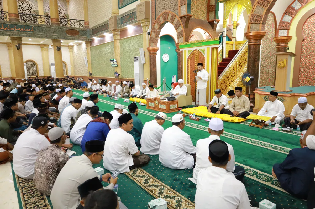 Kegiatan ini berlangsung di Masjid Agung Baitul Makmur dan dihadiri ratusan jamaah dari berbagai kalangan yang mengikuti secara khidmat, pada Minggu (26/4/2026).