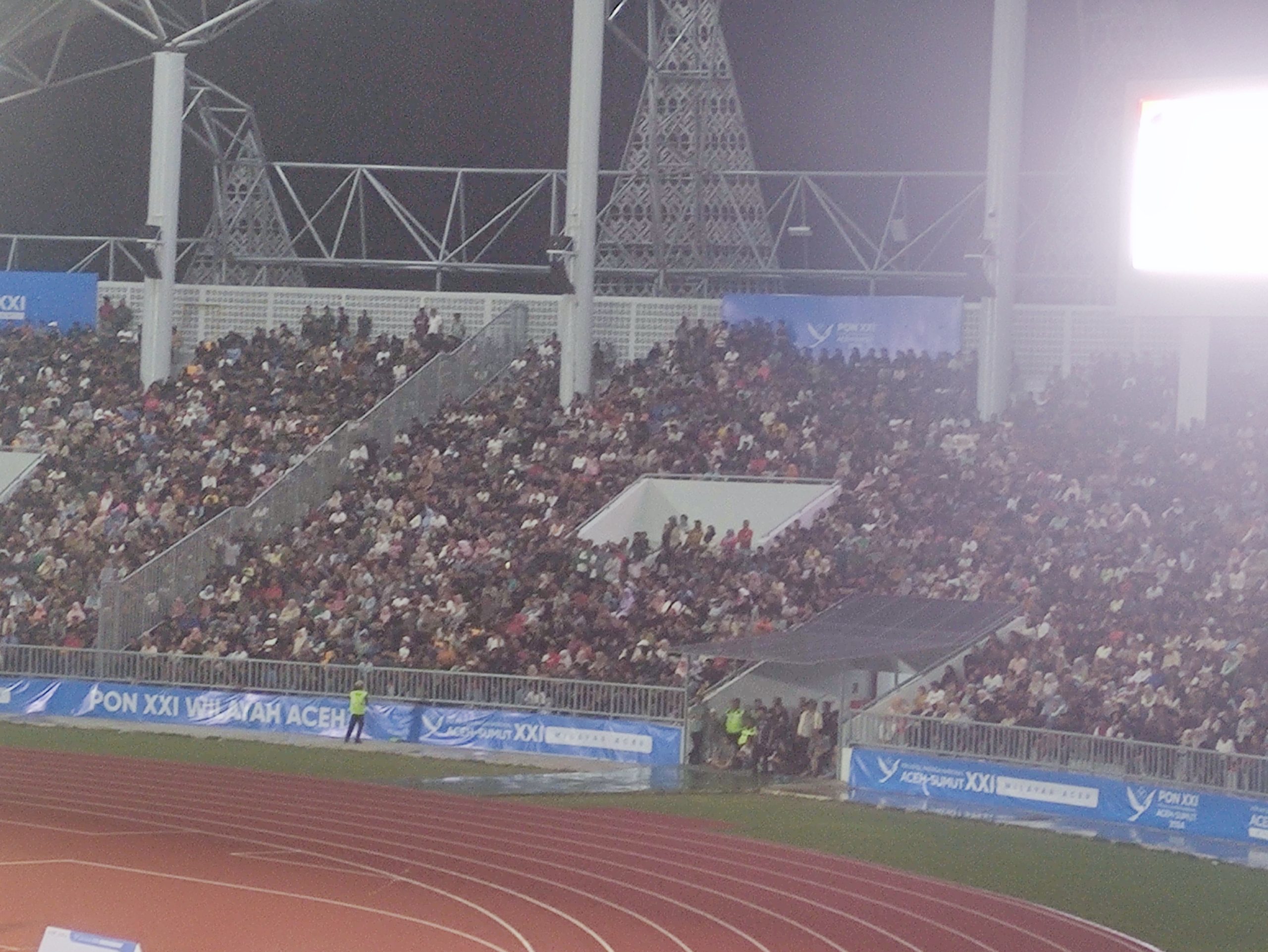 BANDA ACEH — Penanews.co.id — Pecinta sepakbola bumi serambi Mekah sejak sore sudah memadati stadion harapan Bangsa Banda Aceh untuk menyaksikan pertandingan tim PON Sepak Bola Aceh lawan Jawa Timur dibabak semi final, Senin (16/09/2024)