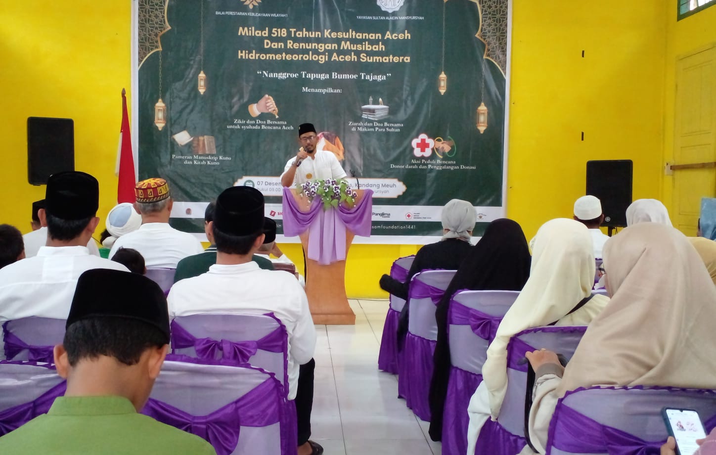BANDA ACEH – Penanews.co.id – Yayasan Sultan Alaidin Mansyursyah menggelar peringatan milad ke-518 Kesultanan Aceh dan renungan musibah hidrometeorologi Aceh Sumatera,,di Komplek Baperis, Banda Aceh, Ahad (07/12/2025) .