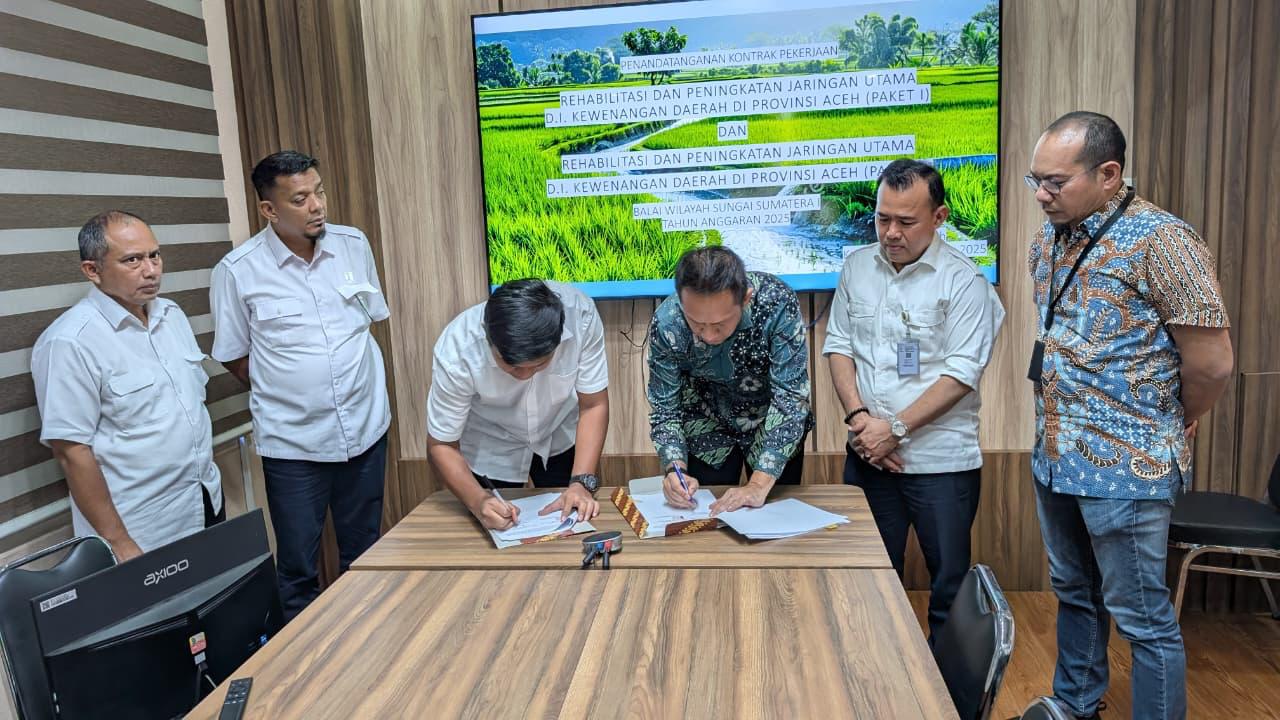 Penandatanganan kontrak untuk dua paket proyek di Aceh telah dilaksanakan Kamis (25/09) di Kantor Balai Wilayah Sungai (BWS) Sumatera I, Banda Aceh, yang dihadiri oleh Kepala Balai BWS Sumatera I Asyari, Kepala SNVT PJPA Sumatera I Azriyan, serta Executive Vice President (EVP) Divisi Sipil Umum Hutama Karya Rizky Agung. Sementara kontrak untuk paket proyek di Bali ditandatangani pada Jumat (26/9) di di Kantor BWS Bali Penida Denpasar, Bali yang dihadiri oleh Plt. Kepala Seksi Operasi dan Pemeliharaan BWS Bali Penida Bima Anjasmoro, Kepala SNVT PJPA Bali Penida Komang Gede Putra Antara, PPK Irigasi dan Rawa I Wayan Yuliartha dan EVP Divisi Sipil Umum Hutama Karya Rizky Agung.