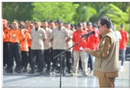 BANDA ACEH — Penanews.co.id — Penjabat (PJ) Sekretaris Daerah Aceh, Azwardi, memimpin apel kesiapsiagaan dan gelar pasukan dalam rangka memperingati Bulan Pengurangan Risiko Bencana (PRB) 2024 di Balee Meuseuraya Aceh pada Selasa, 8 Oktober 2024.