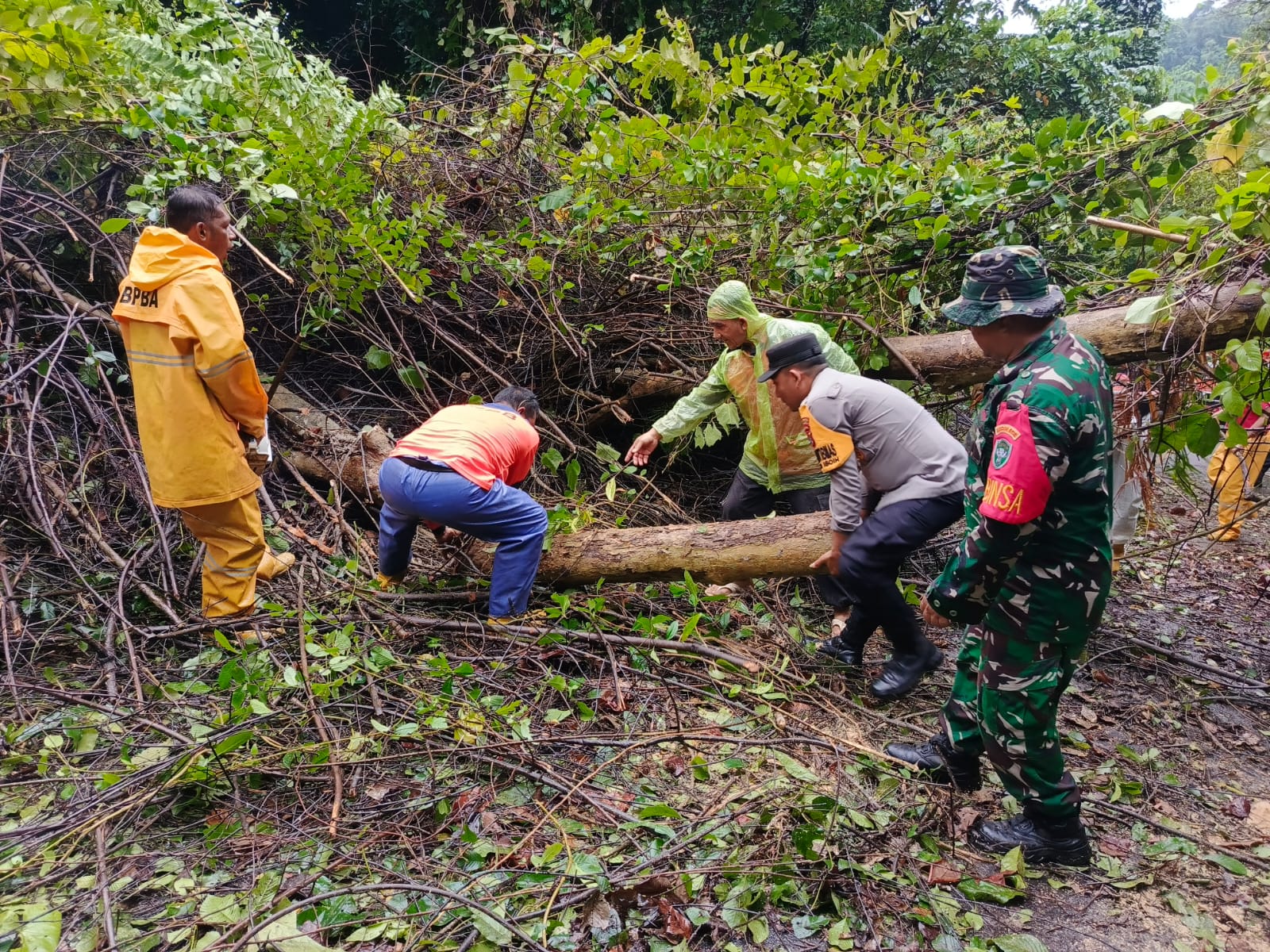 Sinergi lintas instansi tersebut bertujuan mempercepat pembersihan material pohon yang menutup badan jalan, sehingga aktivitas masyarakat dapat kembali berjalan normal.