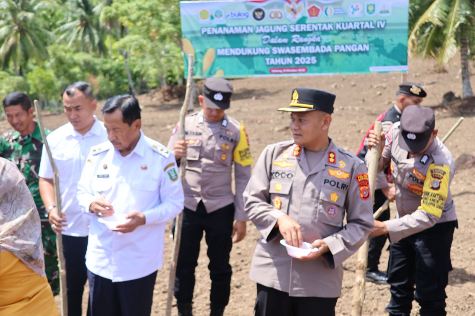 Kegiatan ini dihadiri langsung oleh Kapolres Sabang AKBP Sukoco, S.ST, MM, M.Mar, M.Tr.SOU, M.Han, yang turun ke lapangan bersama unsur Forkopimda, pemerintah daerah, kelompok tani, dan masyarakat dalam penanaman jagung secara simbolis.
