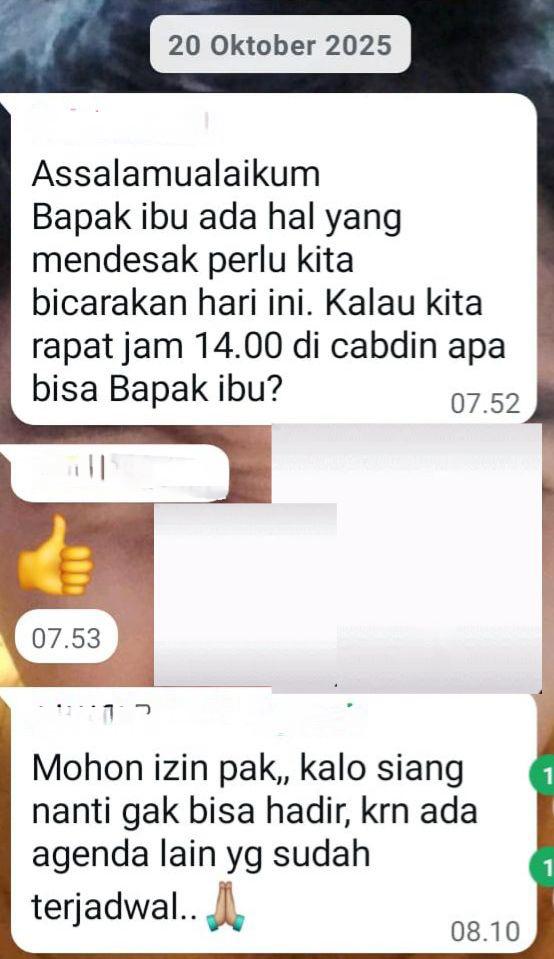Foto : Screenshot percakapan WA dengan Cabdin dan Kepala Sekolah