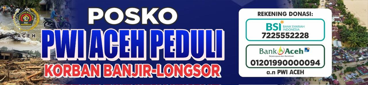 BANDA ACEH – Penanews.co.id – Persatuan Wartawan Indonesia (PWI) Aceh membuka posko dan menggalang donasi kemanusiaan untuk membantu korban yang terdampak banjir besar di 18 kabupaten/kota di Aceh.