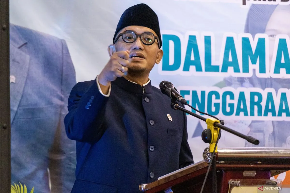 Wakil Kepala Badan Penyelenggara (BP) Haji RI Dahnil Anzar Simanjuntak memberikan penjelasan tentang Kampung Haji di Padang, Sumatera Barat, Sabtu (30/8/2025). | Foto Antara/Muhammad Zulfikar.