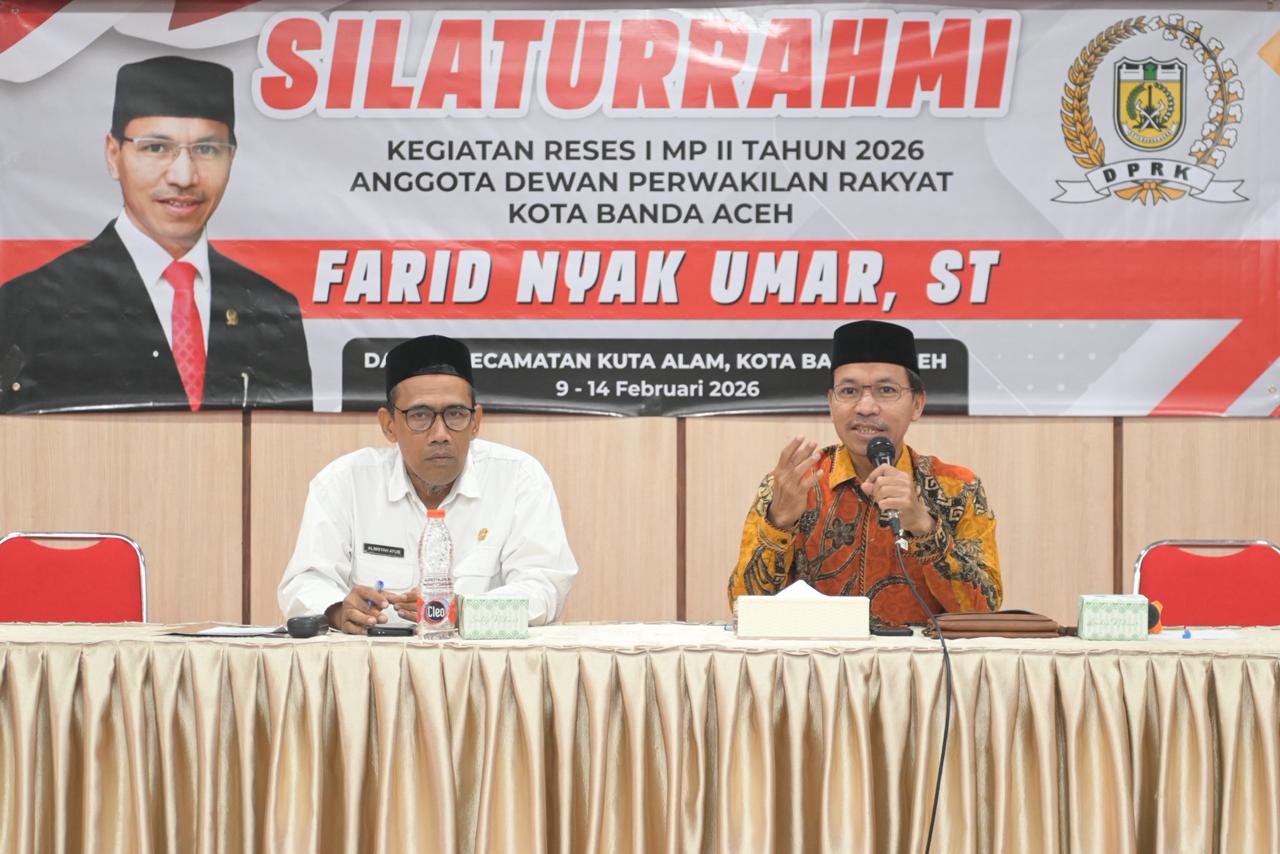 BANDA ACEH – Penanews.co.id — Ketua Komisi IV DPRK Banda Aceh, Farid Nyak Umar, ST menggelar reses I masa persidangan II bersama warga di Aula Gedung Bapelkes Banda Aceh, Rabu (11/02/2026).