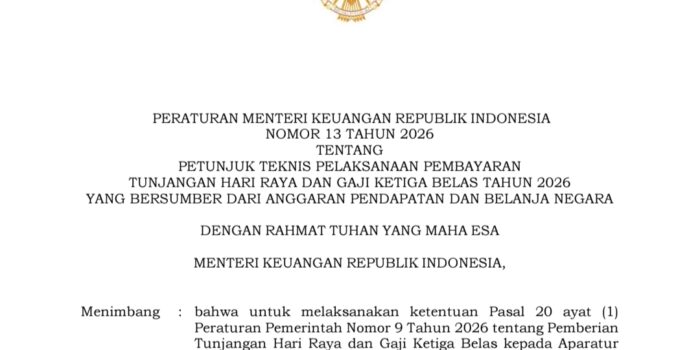 BANDA ACEH – Penanews.co.id – Pemerintah melalui melalui Menteri Keuangan Purbaya Yudhi Sadewa resmi menerbitkan Peraturan Menteri Keuangan (PMK) yang mengatur mekanisme … Continue reading Resmi, Purbaya Terbitkan Juknis Pembayaran THR dan Gaji ke-13 bagi ASN dan Pensiunan, ini Besarannya dan Tanggal Pencairan