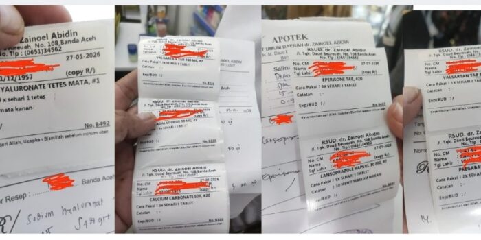 Dari pantauan Penanews.co.id pada Selasa (27/01/2026) di Instalasi Farmasi RSUDZA bagi pasien atau keluarga pasien yang mengantri mengambil obat sesuai dengan nomor antrian tidak semua obat yang diresepkan dokter di poli rawat jalan dia dapatkan. Obat yang tidak tersedia di Instalasi Farmasi itu oleh petugas loket diminta untuk mengambil pada Apotek Kimia Farma yang berbeda di sisi tengah Rumah sakit Tipe A itu.