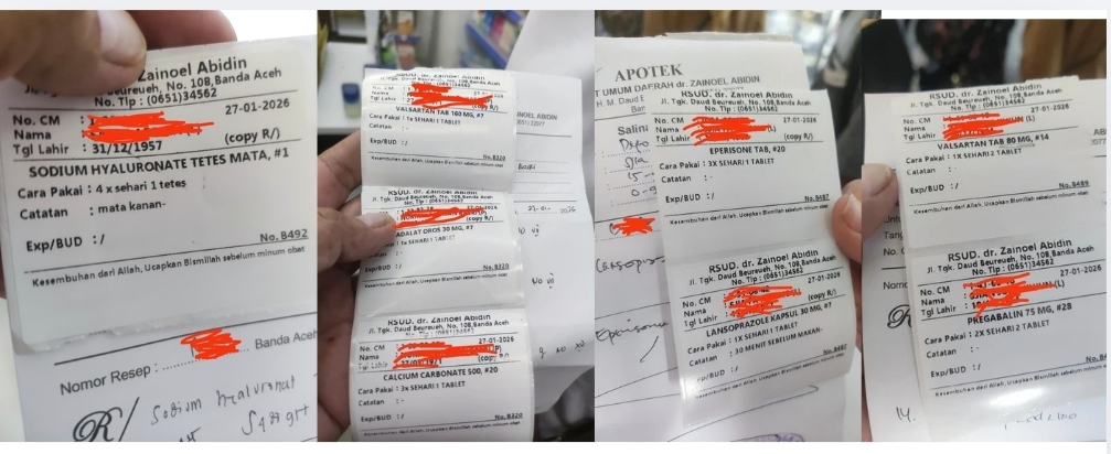 Dari pantauan Penanews.co.id pada Selasa (27/01/2026) di Instalasi Farmasi RSUDZA bagi pasien atau keluarga pasien yang mengantri mengambil obat sesuai dengan nomor antrian tidak semua obat yang diresepkan dokter di poli rawat jalan dia dapatkan. Obat yang tidak tersedia di Instalasi Farmasi itu oleh petugas loket diminta untuk mengambil pada Apotek Kimia Farma yang berbeda di sisi tengah Rumah sakit Tipe A itu.