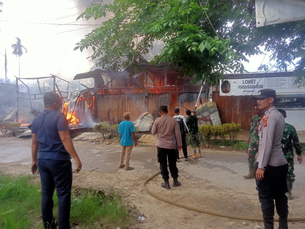 Kebakaran tersebut terjadi sekitar pukul 09.30 WIB menghanguskan bangunan semi permanen milik Saiful Atma (66) yang selama ini disewakan kepada sejumlah pedagang.