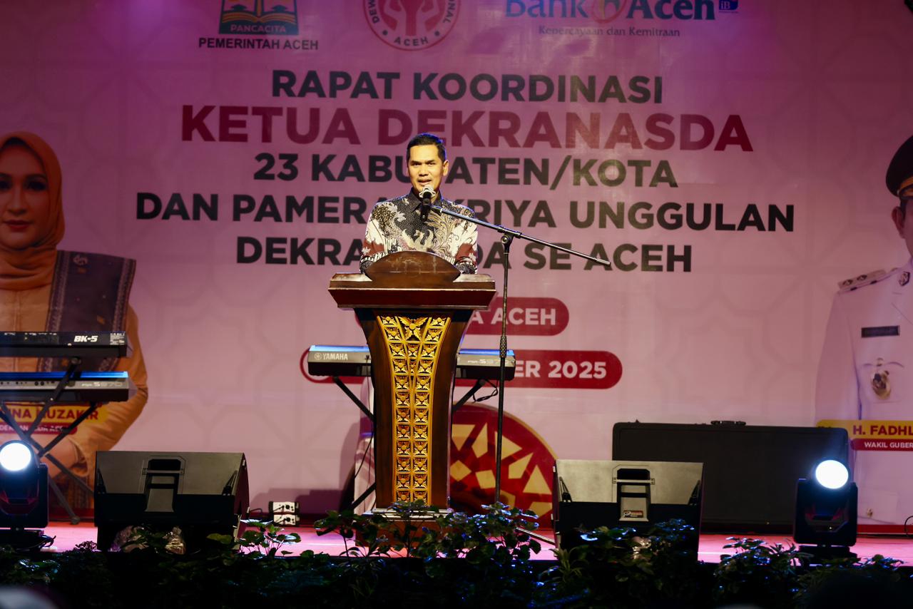 Hal tersebut disampaikan oleh Sekretaris Daerah Aceh M Nasir, saat membacakan sambutan Gubernur Aceh, pada malam penutupan Rapat Koordinasi Dekranasda se-Aceh dan Pameran Kriya Unggulan Dekranasda se-Aceh, di UMKM Center Bank Aceh, Minggu (9/11/2025) malam.