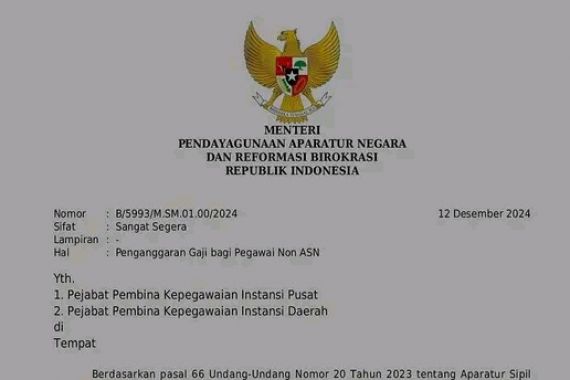 Dalam Surat Menteri Pendayagunaan Aparatur Negara dan Reformasi Birokrasi (MenPAN-RB) Nomor B/5993/M SM.01.00/2024, tertanggal 12 Desember 2024, setiap pejabat pembina kepegawaian (PPK) di instansi pusat dan daerah diinstruksikan untuk menganggarkan gaji bagi pegawai non-ASN (honorer).