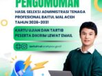 BANDA ACEH – Penanews.co.id – Baitul Mal Aceh (BMA) mengumumkan secara resmi hasil seleksi administrasi Calon Tenaga Profesional Baitul Mal Aceh Tahun