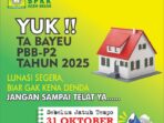 KOTA JANTHO – Penanews.co.id – ‘Jak Tabaye PBB.’ Badan Pengelolaan Keuangan Kabupaten (BPKK) Aceh Besar mengingatkan jatuh tempo pembayaran Pajak Bumi dan