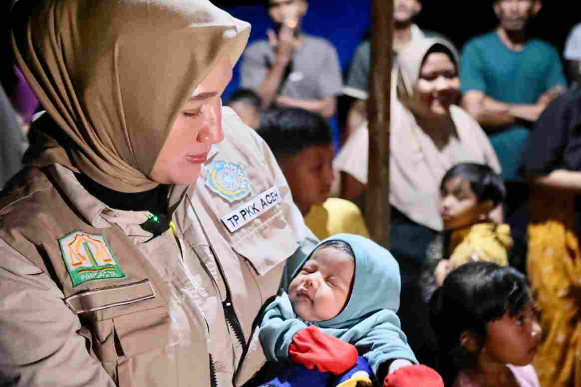 Istri Gubernur Aceh itu juga sempat terenyuh saat melihat anak-anak di posko pengungsian yang tetap menggelar pengajian bersama, meski di lokasi yang kurang nyaman.