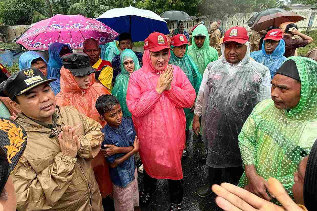 Prihatin akan kondisi rakyatnya, first lady Aceh Marlina Muzakir hari ini meninjau ke beberapa lokasi terdampak banjir di Kota Lhokseumawe, Selasa (25/11/2025).