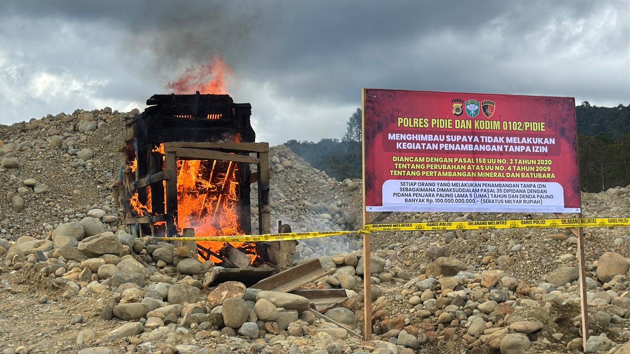 Penertiban tersebut dipimpin langsung oleh Kasubdit IV Tipidter Ditreskrimsus Polda Aceh, Kompol Hermanto Bowo Laksono, S.I.K., dengan dukungan Kabag Ops Polres Pidie AKP Raja Amiruddin Harahap, S.Sos., dan Kasat Reskrim Polres Pidie AKP Dedy Miswar, S.Sos., M.H., serta personel gabungan dari TNI Kodim 0102/Pidie.
