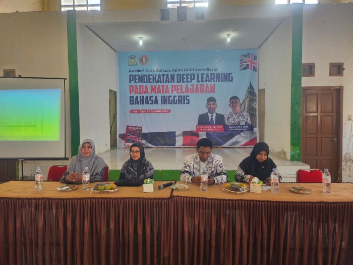 KOTA JANTHO – Asosiasi Guru Bahasa Asing (AGBA) Persatuan Guru Republik Indonesia ( PGRI ) Kabupaten Aceh Besar menyelenggarakan Pendidikan dan Pelatihan (Diklat) Pendekatan Deep Learning, di Aula SMPN 3 Kecamatan Ingin Jaya Kabupaten Aceh Besar, Rabu (27/08/2025).