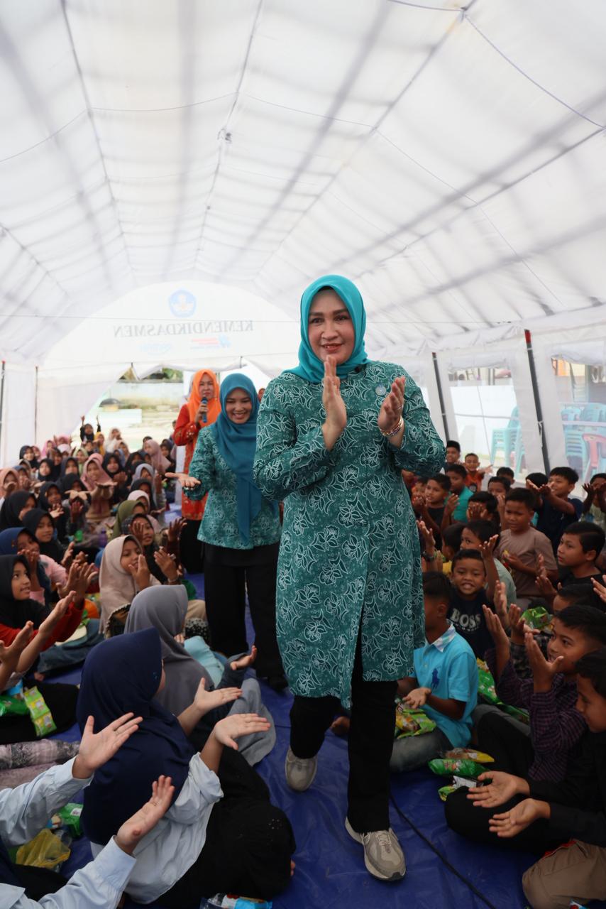 Pada kesempatan tersebut, Kak Na juga memberi motivasi dan dorongan semangat kepada ratusan siswa di SD 6 Jamboe Aye, yang dengan tekun mengikuti proses belajar mengajar di tenda Sekolah Darurat.