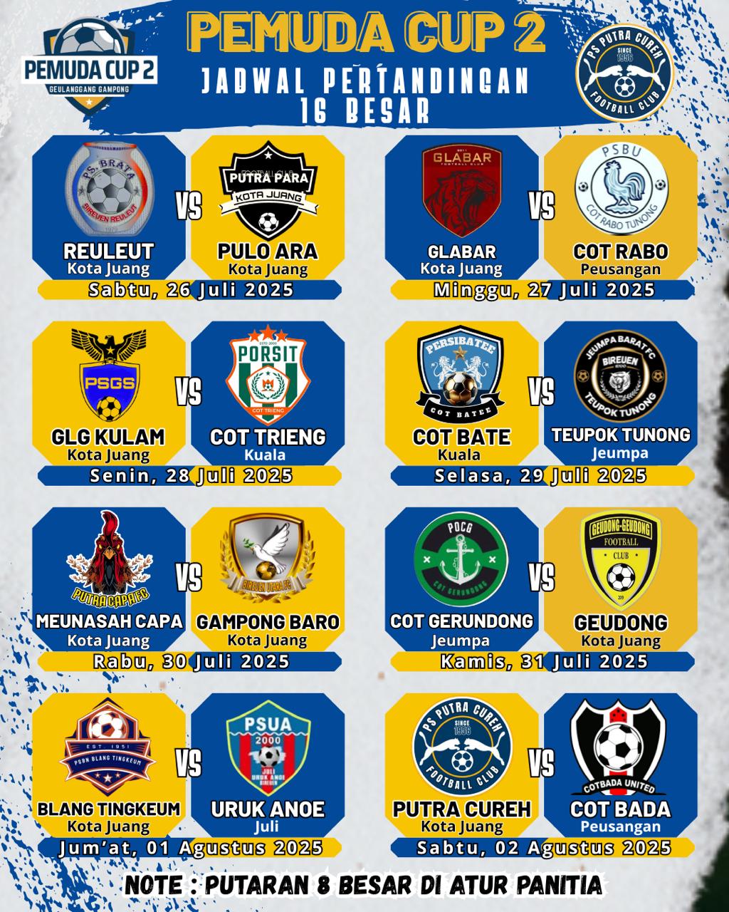 Berikut daftar 16 tim peserta Turnamen Pemuda Cup II Geulanggang Gampong 2025: