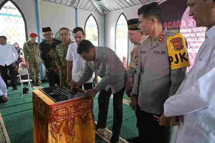 Kegiatan peresmian diawali dengan peninjauan langsung ke kompleks hunian tetap yang telah rampung dibangun. Deretan rumah tampak berdiri rapi dan siap dihuni oleh masyarakat penerima manfaat. Di dalam kawasan itu juga telah dibangun satu unit mushalla yang dapat dimanfaatkan warga untuk beribadah dan kegiatan keagamaan lainnya.
