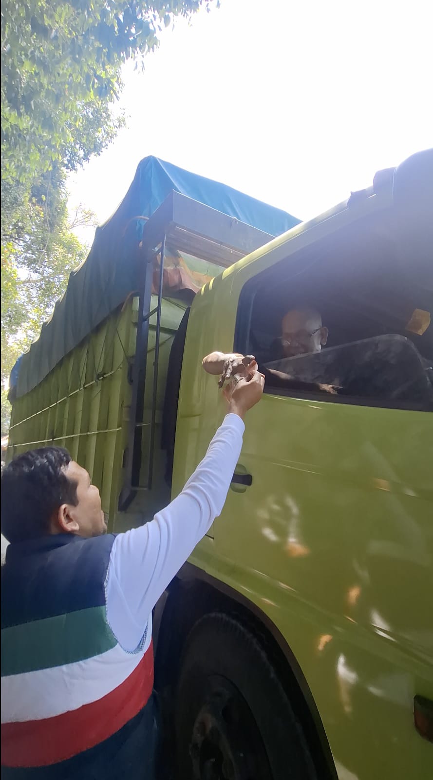 Dikarenakan jalanan di kawasan Gurute sempit dan macet, kedua supir truk itu memelankan laju kendaraan sehingga Wagub bisa beranjak dari tempat duduk untuk menyapa sang supir.