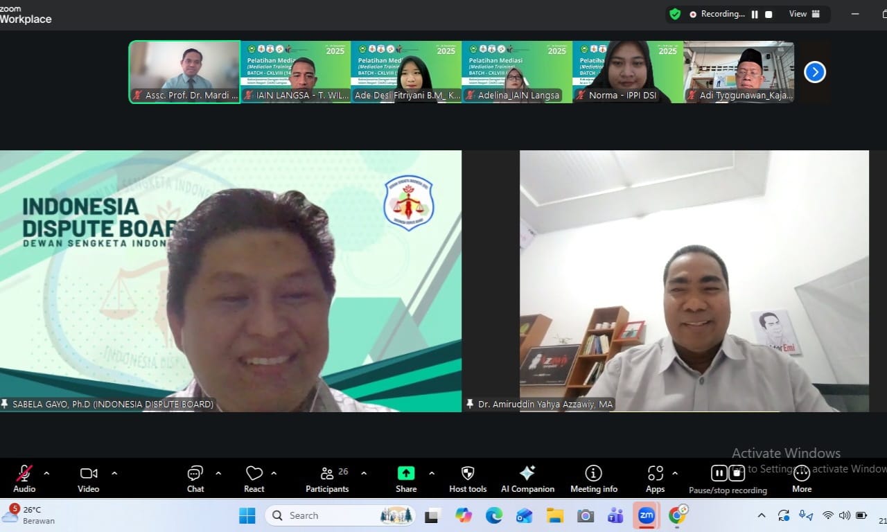 LANGSA – Penanews.co.id – Institut Agama Islam Negeri (IAIN) Langsa menyelenggarakan Pelatihan Sertifikasi Mediator Batch 148 yang bekerja sama dengan Dewan Sengketa Indonesia (DSI) terakreditasi Mahkamah Agung Republik Indonesia.