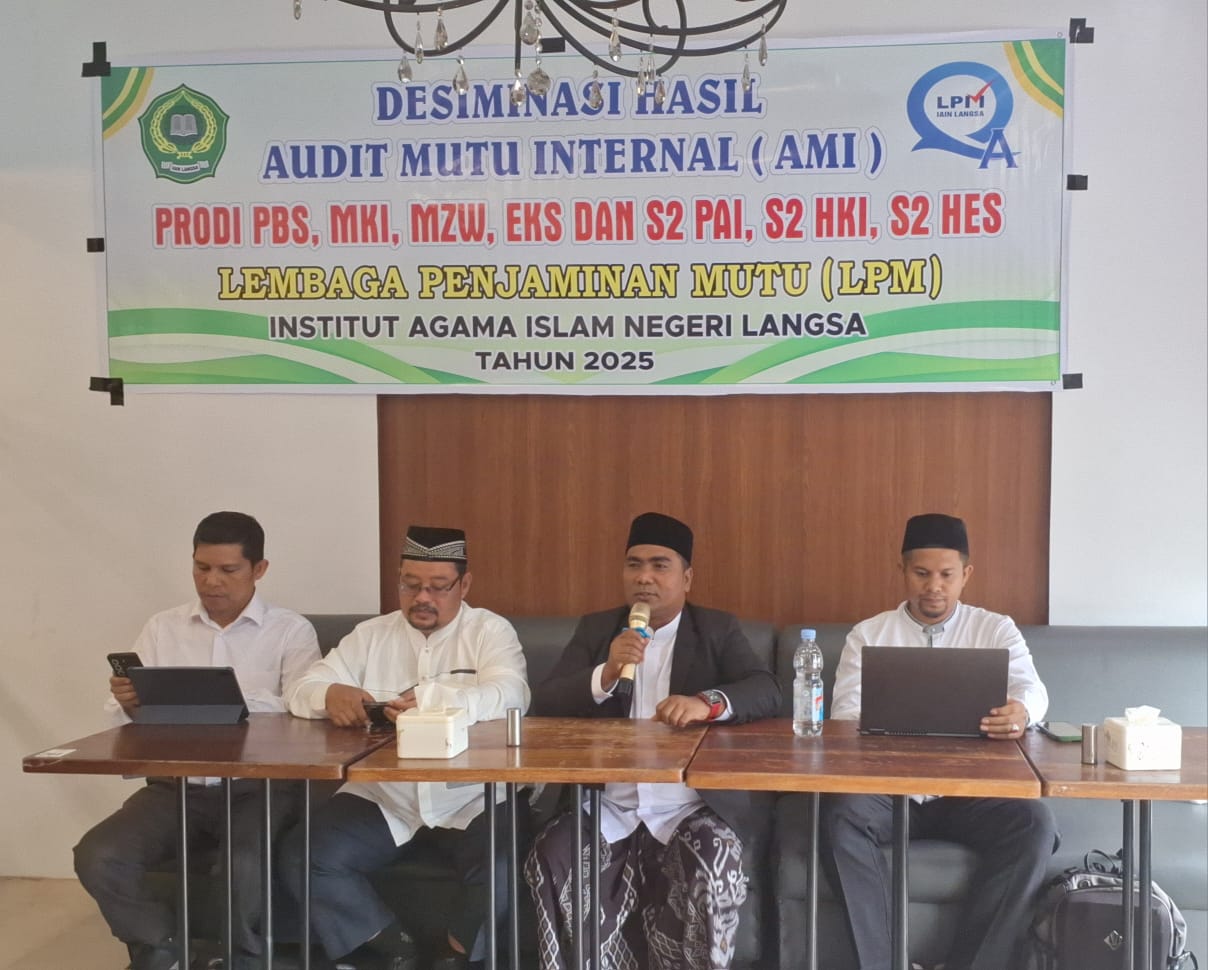 LANGSA – Penanews.co.id – Wakil Rektor I Institut Agama Islam Negeri (IAIN) Langsa, Dr. Amiruddin Yahya Azzawiy, MA, yang akrab disapa Dr. Emi, secara resmi menutup kegiatan Diseminasi Hasil Audit Mutu Internal (AMI) yang diselenggarakan oleh Lembaga Penjaminan Mutu (LPM) IAIN Langsa. Kegiatan ini berlangsung di Kanasha, Kota Langsa, (22/10/2025).