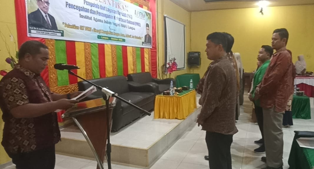 LANGSA — Penanews.co.id — Wakil Rektor I Institut Agama Islam Negeri (IAIN) Langsa, Dr. Amiruddin Yahya Azzawiy, M.A, mewakili Rektor IAIN Langsa Prof. Dr.Ismail Fahmi Arrauf Nst, MA melantik pengurus Unit Layanan Terpadu Pencegahan dan Penanganan Kekerasan Seksual (ULT PPKS) IAIN Langsa periode 2025 – 2027 di aula kampus setempat, Kamis (23/10/2025).